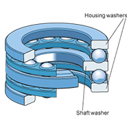 双向推力轴承使用的座圈和钢球-保持架组件与单向推力轴承相同。